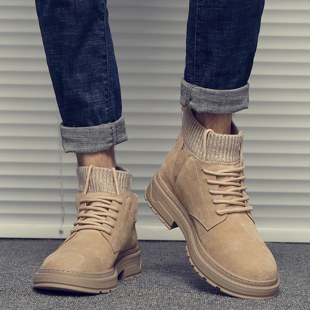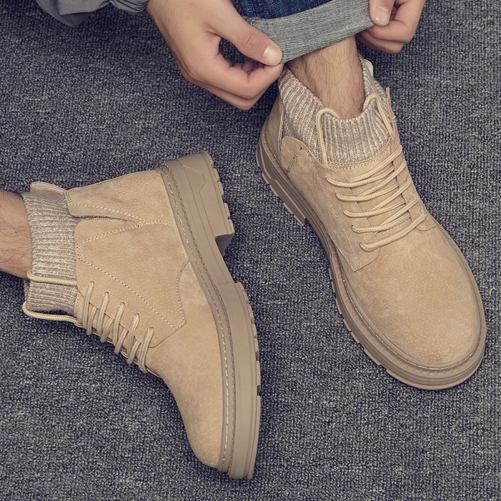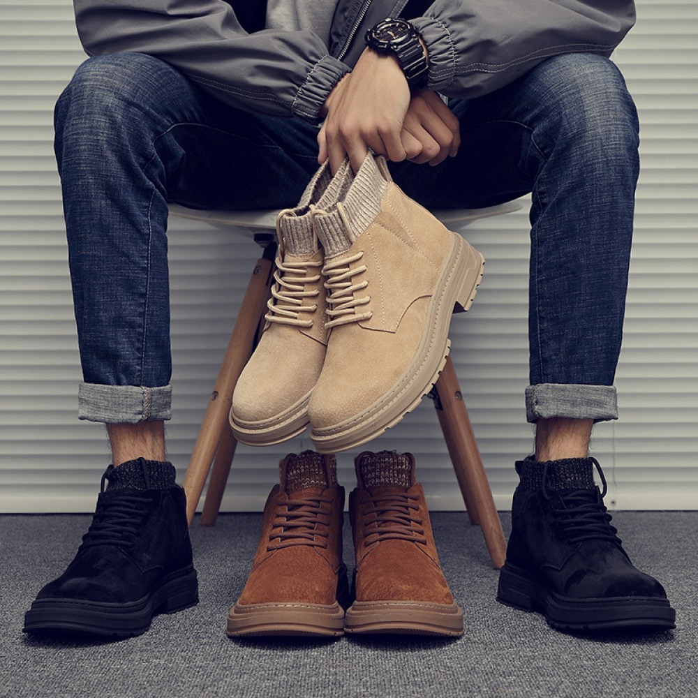 Men's British Style Tooling Boots Trend High-Top Shoes Casual Breathable Short Martin Boots