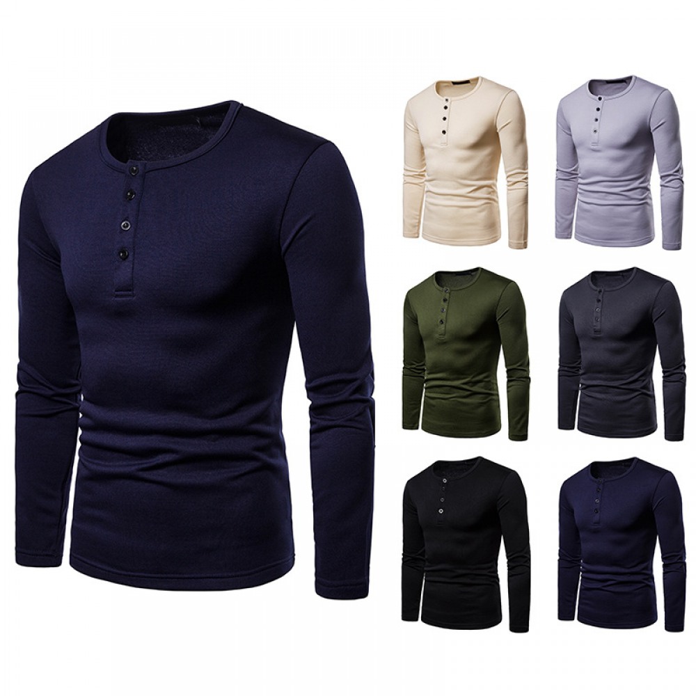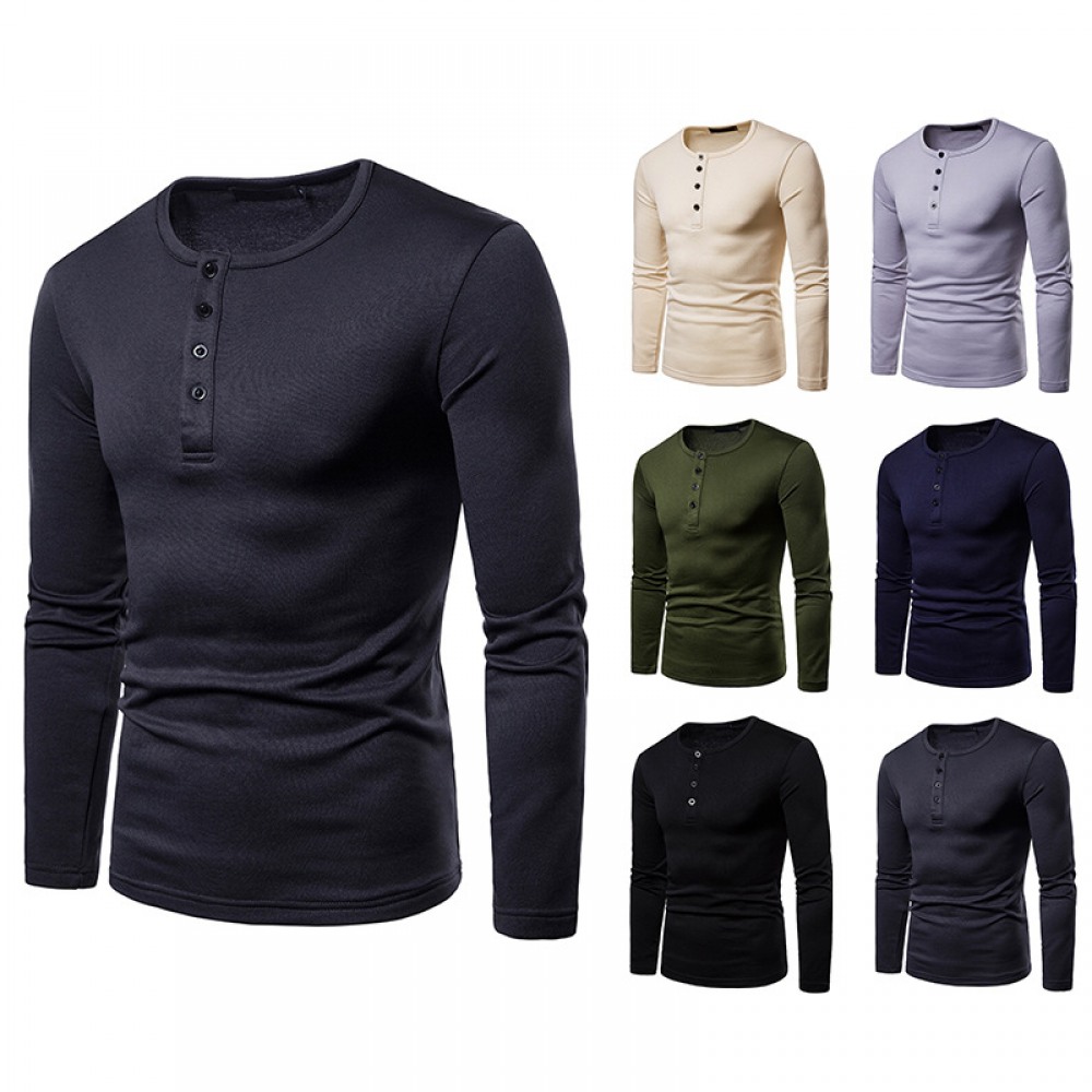 Men's Plus Size Plus Velvet Warm Henley Collar Long-Sleeved T-Shirt Bottoming Shirt