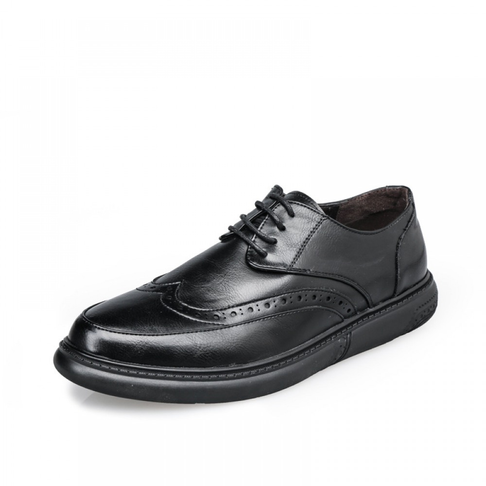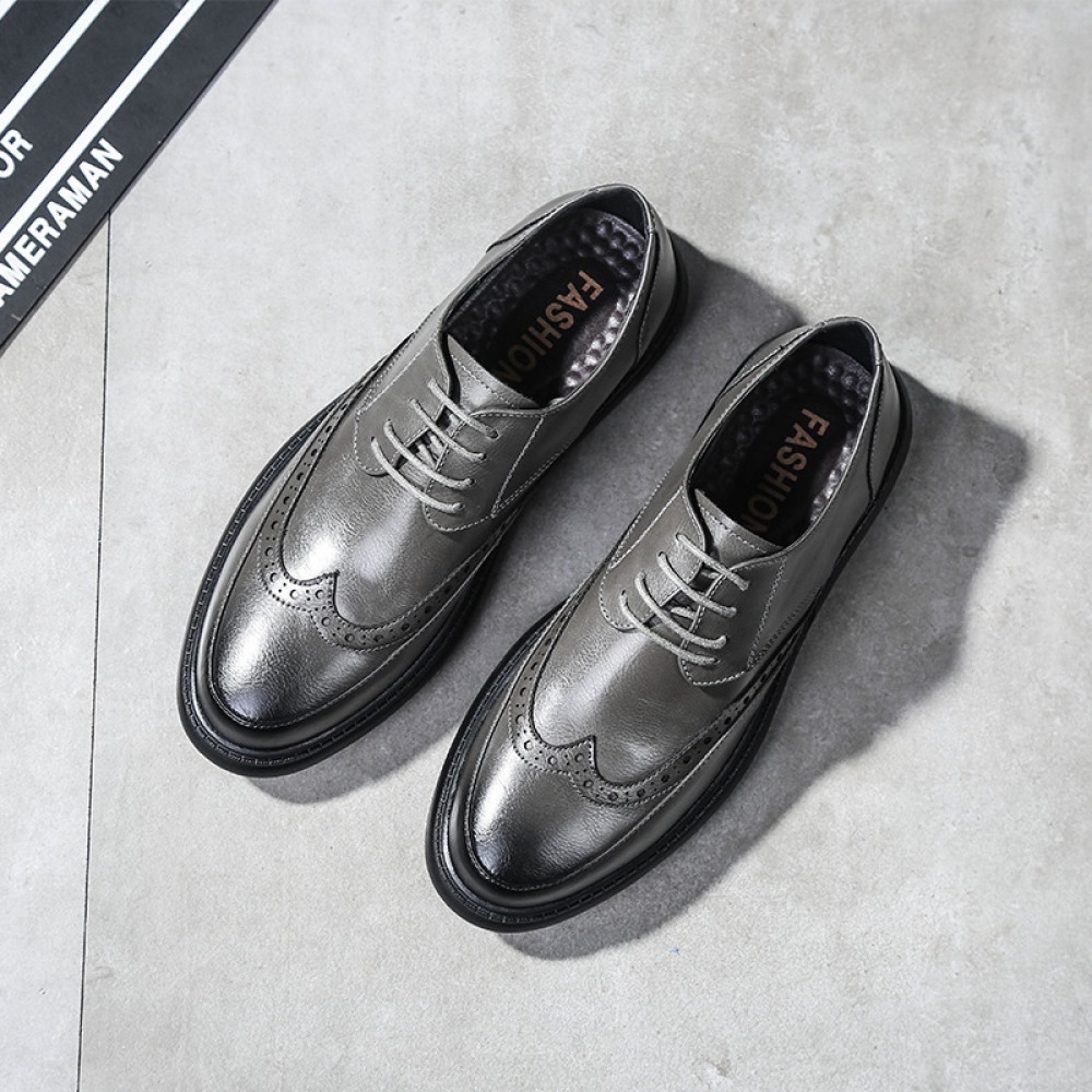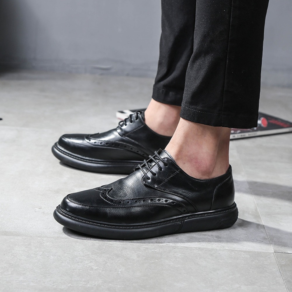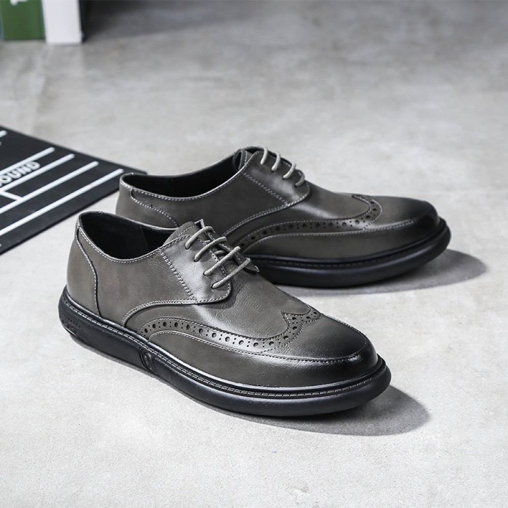 New Men's Casual Leather Shoe Round Toe Lace-Up Breathable Trend Shoes