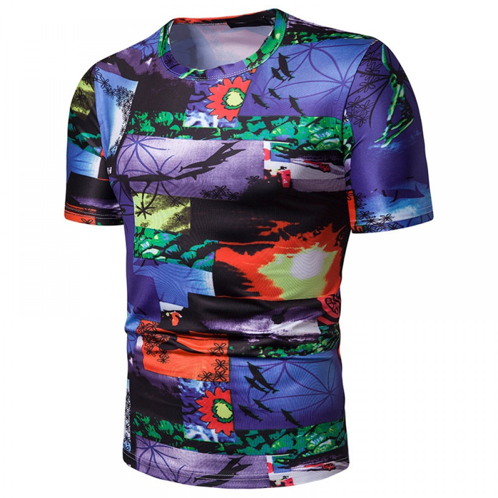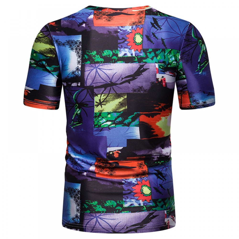 New Summer Men's Beach Style Printed Short-Sleeved T-Shirt