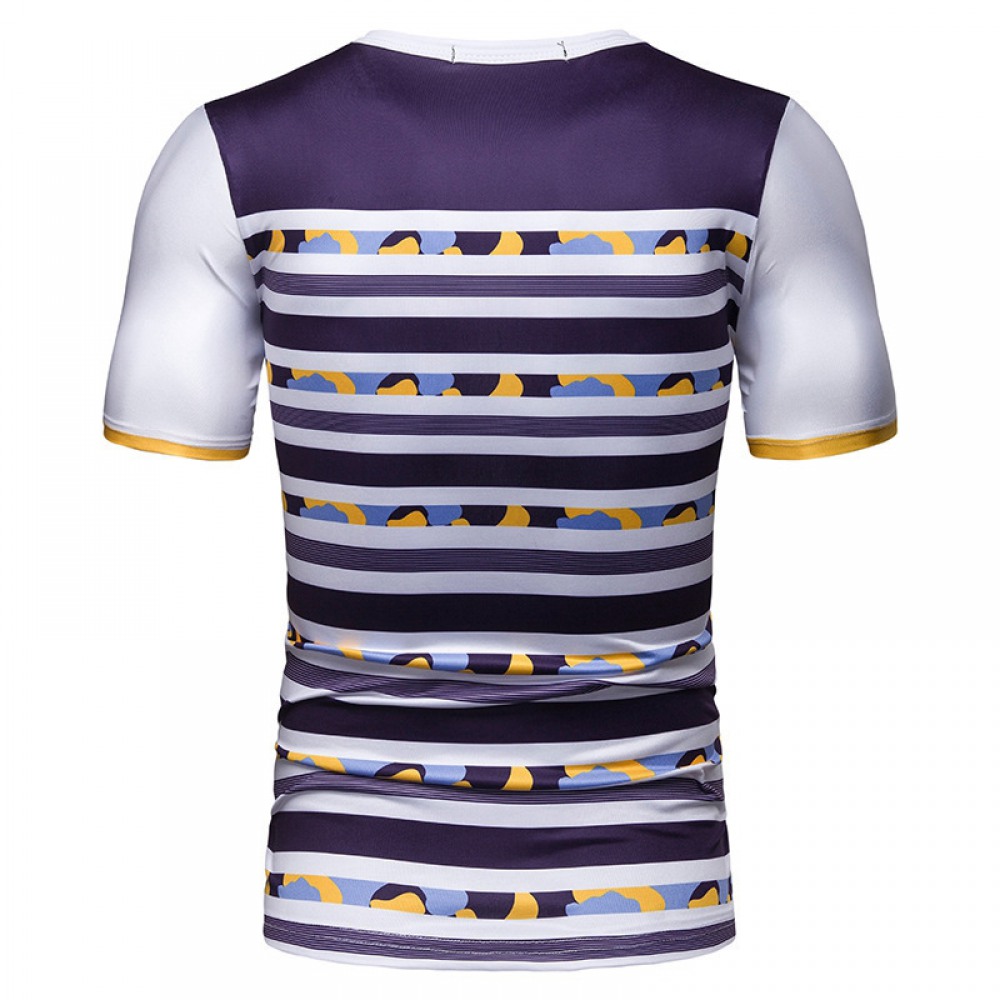 New Summer Men's Short-Sleeved T-Shirt Mens Contrast Striped Slim Casual T-Shirt