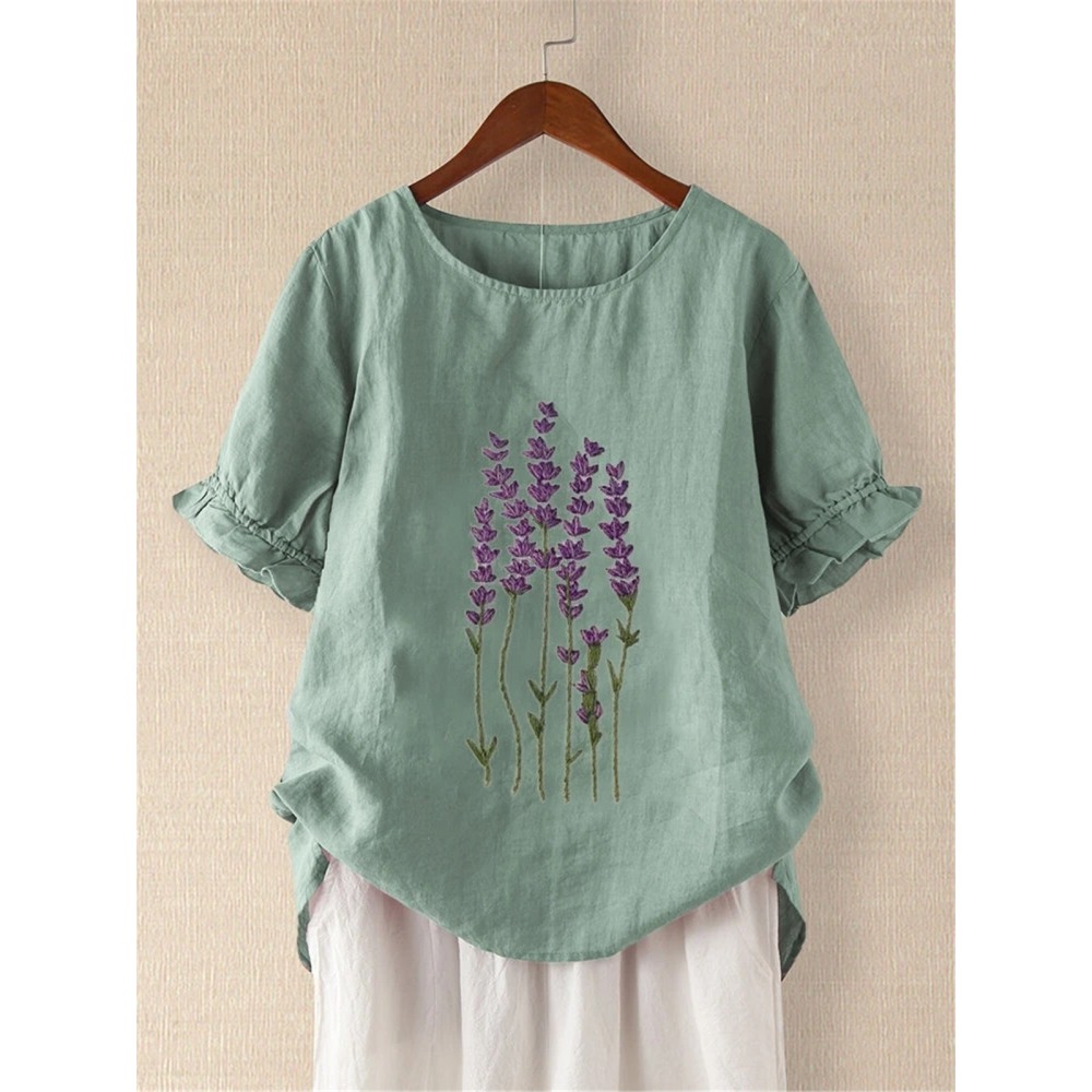 Print T-Shirt Cotton and Linen Casual Short-Sleeved T-Shirts