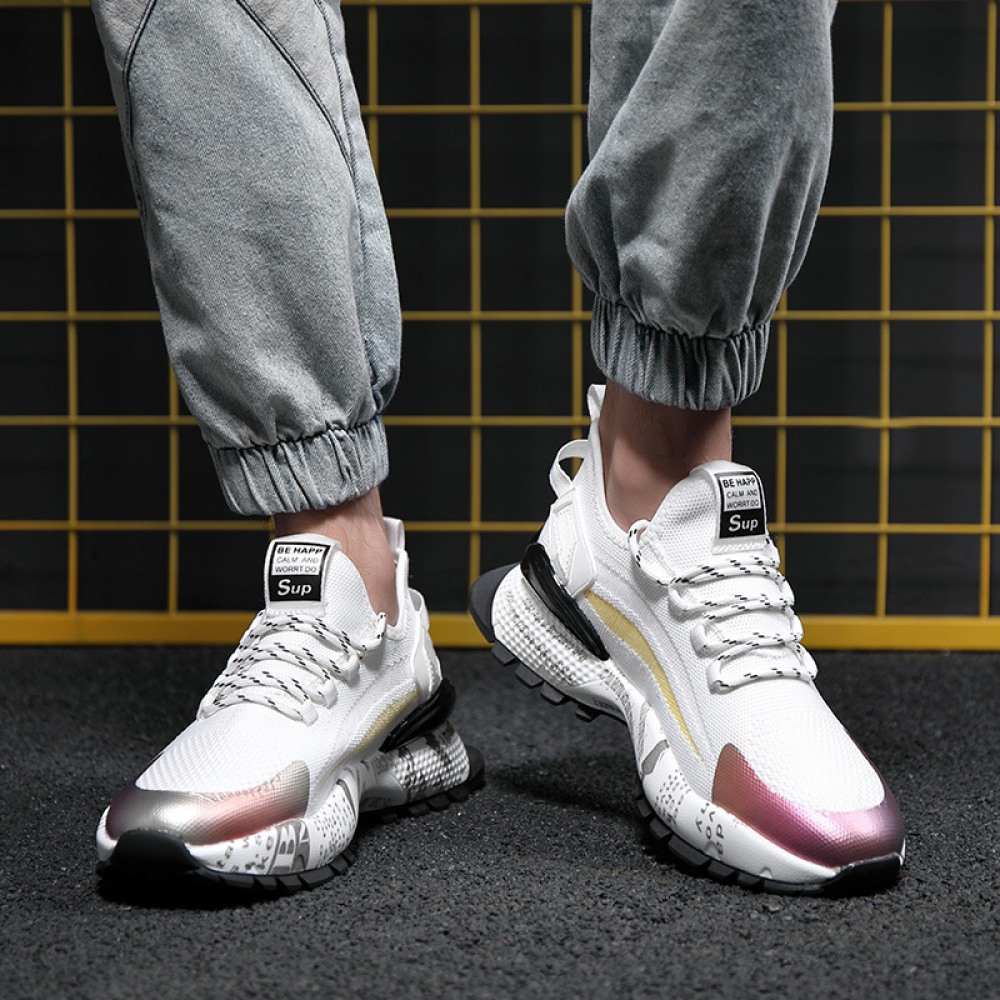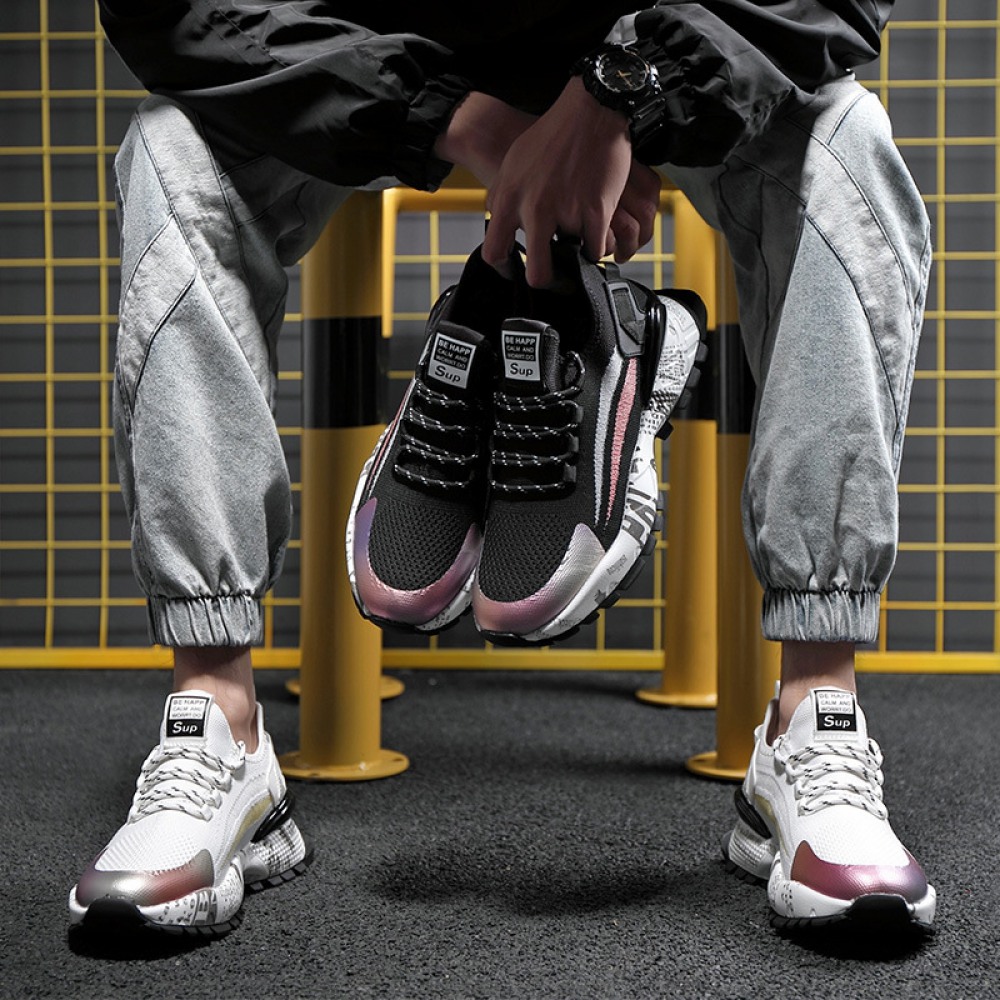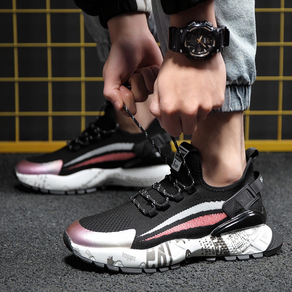Spring New Men's Low-Top Sneakers Thick-Soled Fly Woven Casual Trendy Shoes