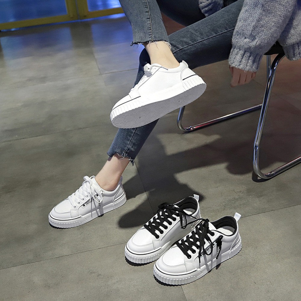 Spring White Running Board Shoes Lace-Up Flat-Bottom Breathable Casual Shoes