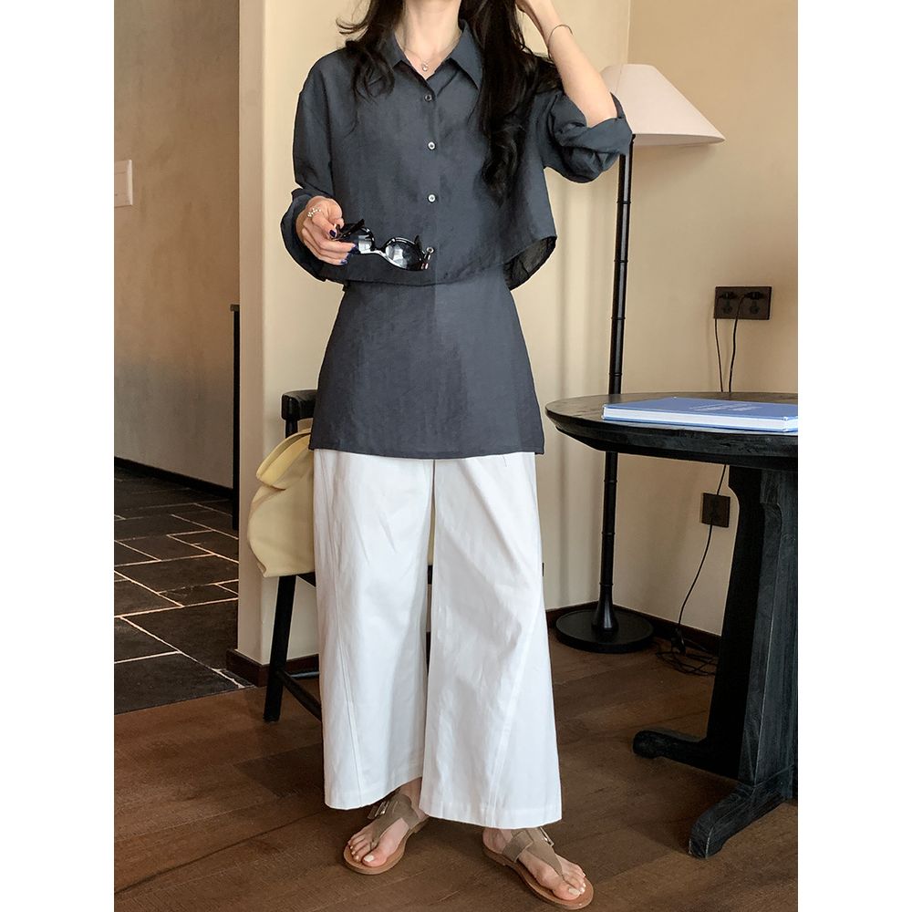 Thin Long-Sleeved Shirt Suspender Top Two-Piece Suit For Women