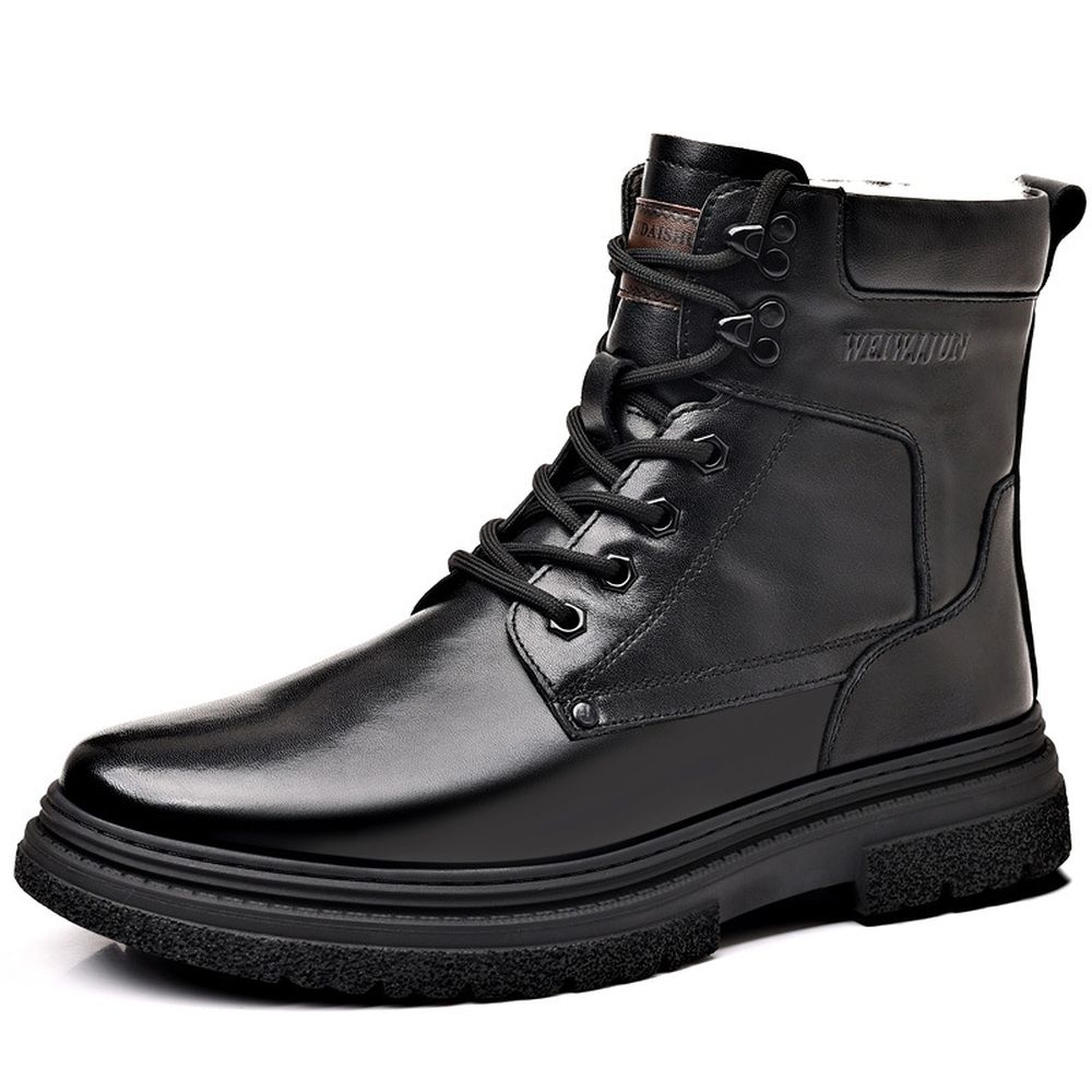 Winter Men's Cotton Shoes Leather Wool Outdoor Warm Boots