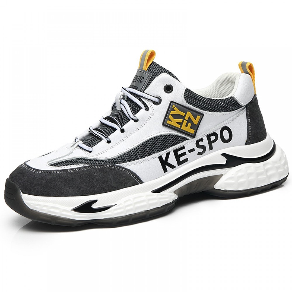 Men's Leather Fashion Casual Trendy Shoes Autumn Thick Soles Increased Breathable Mesh Sports Shoes
