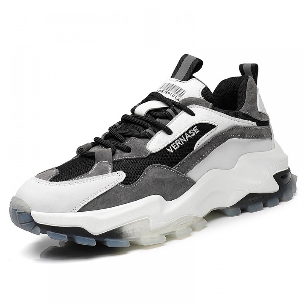 Men's Leather Fashion Casual Trendy Shoes Autumn Thick Soles Increased Breathable Mesh Sports Shoes