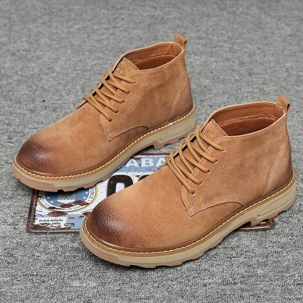 Men's Leather Short Boots Desert Rhubarb Boots New High-Top Martin Boots