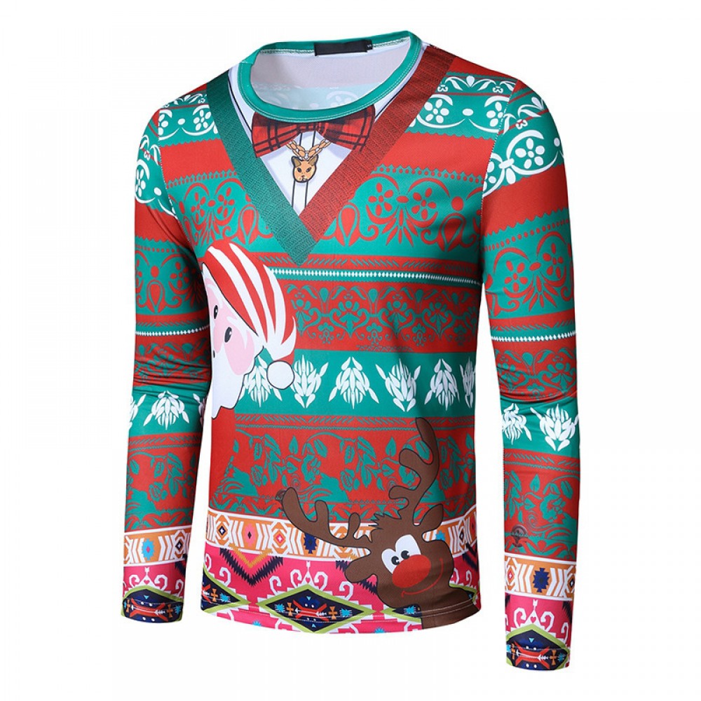 New 3D Personality Printing Fashion Men's Christmas Santa Pattern Long Sleeve T-Shirt